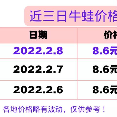 - 天气因素:天气异常如洪水、干旱等会影响牛蛙的养殖和运输,导致价格波动。